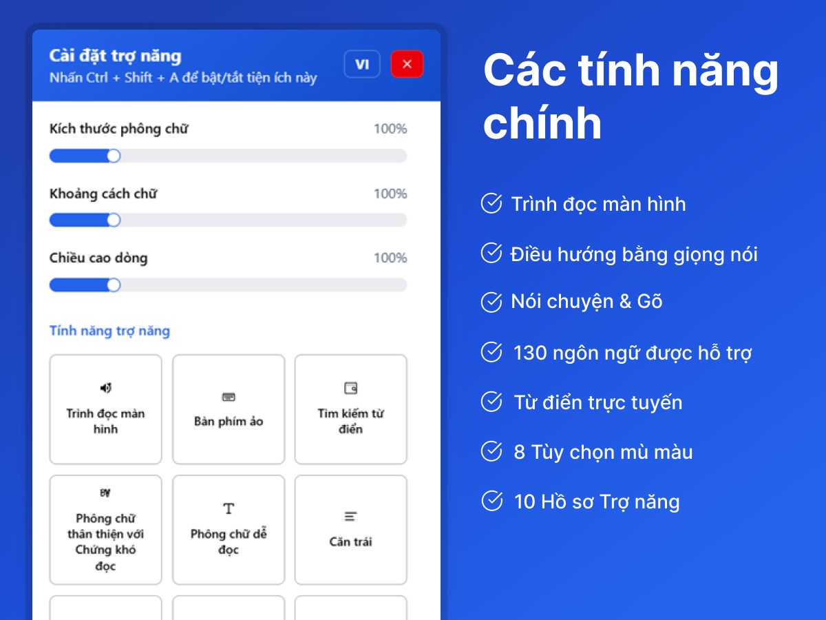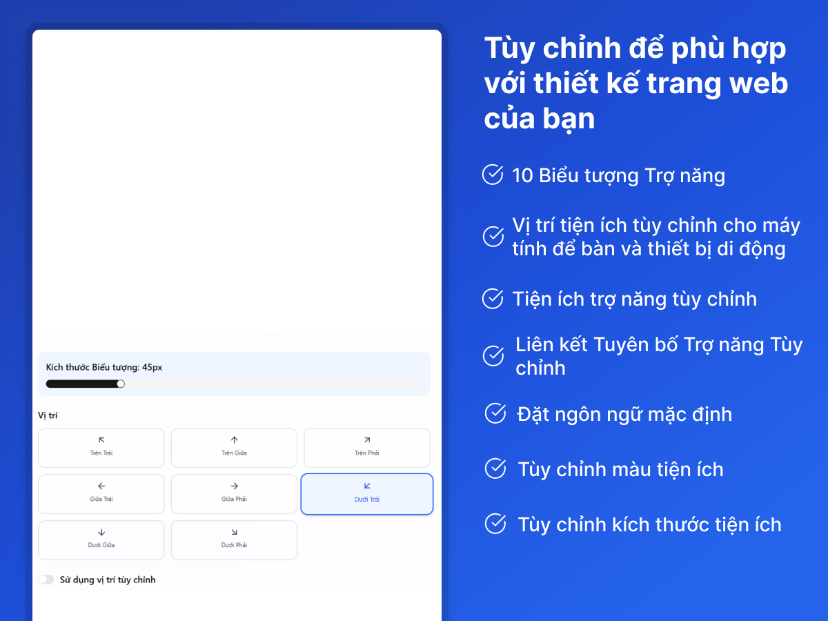 Trải nghiệm tiện ích trợ năng hàng đầu được thiết kế để nâng cao khả năng truy cập trang web của bạn một cách dễ dàng và hiệu quả.