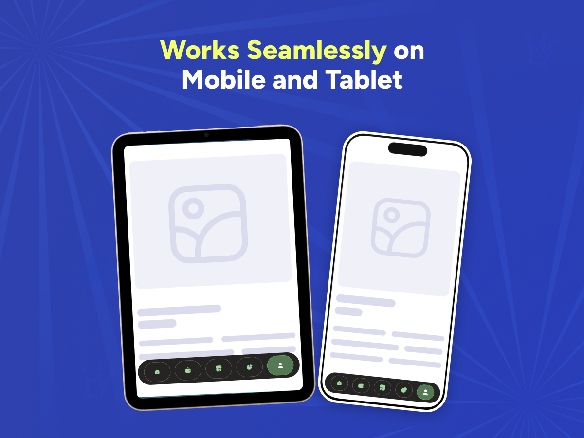 Với nhiều kiểu bố cục, vị trí linh hoạt và tùy chỉnh thiết kế đầy đủ, Mobile Menu Tab hoà trộn hoàn hảo vào thương hiệu của cửa hàng của bạn trong khi cải thiện sự tiện lợi và tương tác - không cần mã hóa.